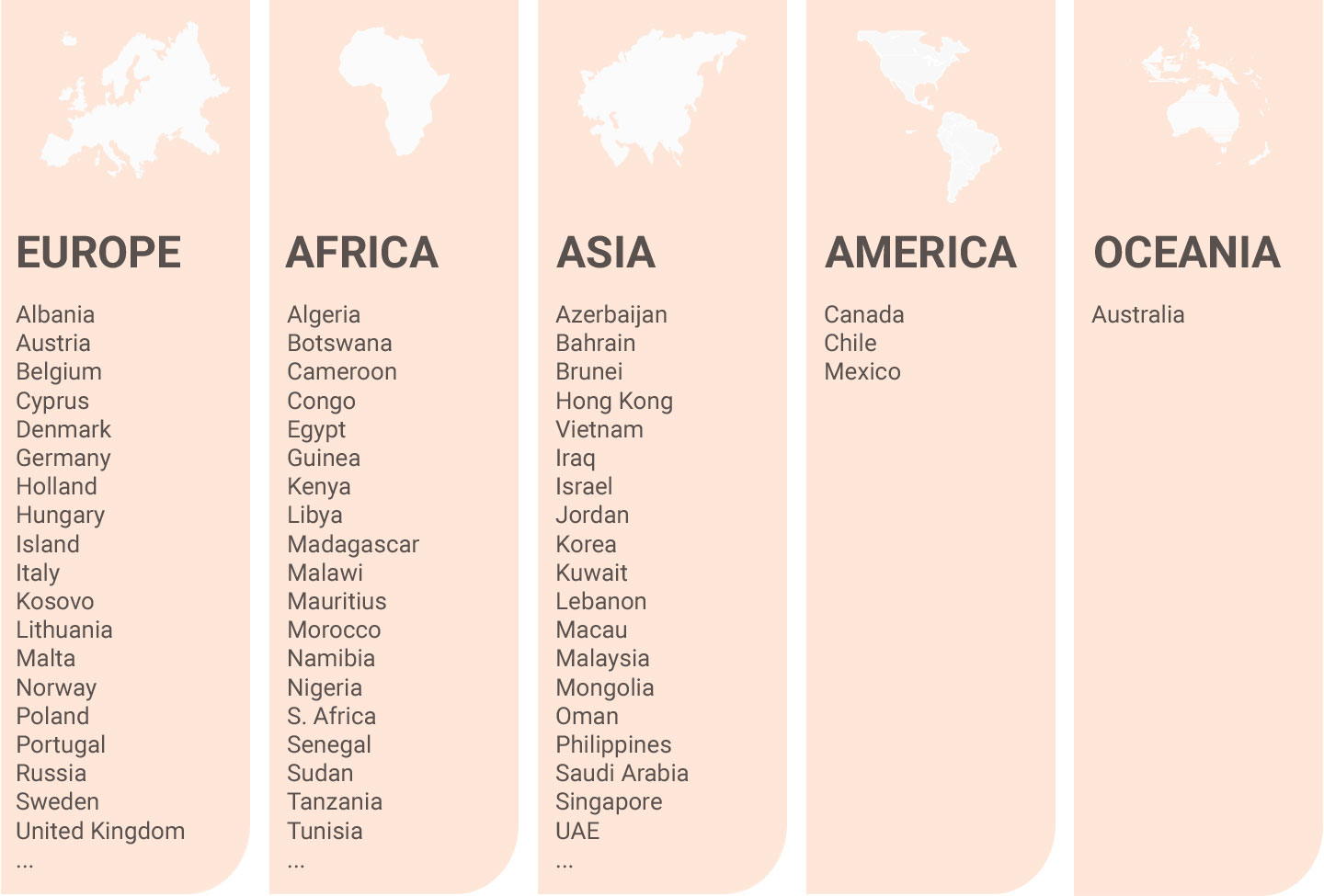 Our products are commercialized in five continents, including the following countries: